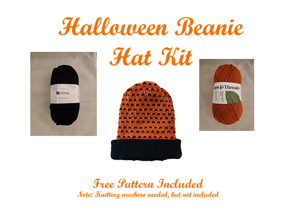 The Halloween Beanie Hat Kit contains one skein of orange yarn, one skein of black yarn and a Sentro 40/48 or Addi 46 knitting machine pattern. You need the knitting machine in order to create the hat. The knitting machine is not included in this purchase. This is a great gift for someone who has a Sentro or Addi knitting machine.