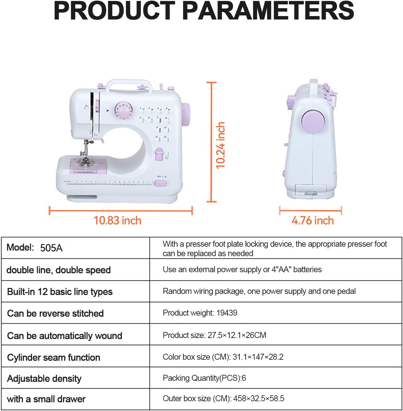 Portable Sewing Machine – 505A is larger than the D717. This machine has the following features: